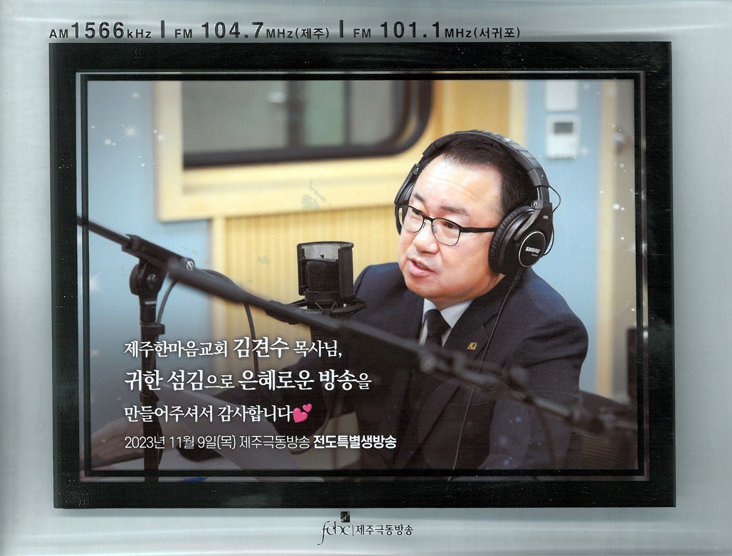 제주극동방송국에서 제주복음화율 1% 상승을 위한 전도특별생방송을 코로나 팬데믹 기간인 2019년도부터 4년째 이어오고 있다. 제주지역의 참여 교회들이 약 한 달간 태신자(전도 대상자) 명단과 연락처를 제주극동방송국에 등록하면 100여명의 전도특공대원(전화 전도 상담원)들이 전화연결을 하여 예수를 영접시켜 각 교회로 인도하는 새신자 전도 프로그램이다. 지난3년 간 총4,997명의 태신자가 접수 되었고, 생방송과 전도특공대원들의 전화연결을 통해 총3,856명이 상담을 받았고 그 중에서 1,833명이 예수를 영접하는 결과를 얻었다. 올해에도 지난 10월에 전도 대상자들을 모집하여 총55개 교회에서 1449명의 전도대상자를 접수하였고 2023년11월9일(목)~10일(금)까지 이틀 동안 전도특별생방송을 통해 실시간으로 전도대상자를 방송 중에 전화로 연결하여 상담과 함께 결신고백을 하는 시간을 진행 하였다. 11월9일(목)오전8시~9시까지 약 1시간동안 진행된 생방송 첫 시간에는 제주한마음교회 김견수 목사가 생방송에 참여하여 그동안 제주한마음교회 성도들이 접수한 46명의 태신자 명단 중에서 먼저 2명에게 복음을 전하여 예수그리스도를 구주로 영접시키고 곧 우리교회에 나오기로 결신하는 성과를 거두었다. 생방송이 진행되는 동안에 스튜디오 바로 옆에 있는 중보기도실에서는 권사님들 10여명이 방송국에까지 함께 가서 태신자들의 영혼결실을 위해서 함께 눈물로서 간절히 중보 기도하는 시간을 가졌다.