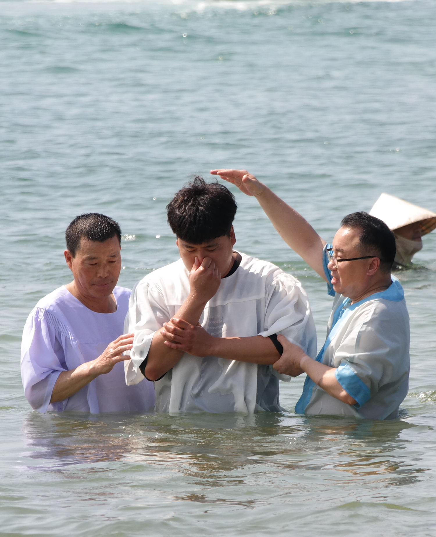 †제주시 이호해수욕장에서 침례식† 온전한 신앙고백과 주님께 순종을 결단한 분들의 침례식이 오늘 8월25일(일)에 이호해수욕장에서 있었습니다. 물속에 잠김으로 첫 아담에 속했던 지옥 갈 죄인의 신분은 예수그리스도의 십자가 죽으심에 연합하여 물속에 장례 치르고, 물위로 올라옴으로 부활의 첫 열매되신 예수그리스도의 부활에 연합하여 영원한 부활의 약속과 소망을 가졌음을 뭇 증인(성도)들 앞에서 고백하고 선포하였습니다. 오늘 침례를 받으신 분들은 주님의 지상대명(마28:19)인 침례명령에 온전히 순종함으로 예수그리스도께 연합한 자가 되었습니다. 주님의 이름으로 축하드립니다! 예배 마치고 다들 귀가를 하는데도 불구하고 일부러 시간을 내어 무더운 침례식 현장까지 달려와 축하해 주시고 침례의 증인이 되어주신 분들께 감사드려요~ 할렐루야♬