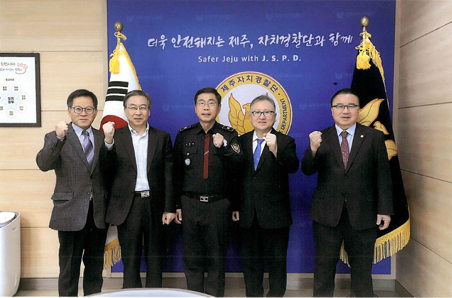 제주특별자치도 자치경찰단 (단장 오충익 경무관)은 11월6일(목)에 부임 후 김견수 목사(제주한마음교회)를 비롯한 경목위원회 소속 목회자들과의 첫 공식 만남을 가졌다. 이번 만남은 오충익 단장이 부임한 이후 처음으로 진행된 기독교계와의 교류의 장으로, 따뜻한 신앙 교류와 협력의 계기를 마련했다. 이날 모임에서 경목위원들과 자치경찰단은 다가오는 성탄절을 맞아 12월초 자치경찰단 내에 성탄축하 트리를 설치하고, 단원들과 함께 점등식 및 성탄감사예배를 드리기로 결정했다. 이를 통해 자치경찰 단원들에게 하나님의 사랑과 평강의 메시지를 전하고, 지역사회 속에서 기독교 신앙의 따뜻함을 나누는 자리가 될 것으로 기대된다. 또한 이날 경목위원들은 단장 및 간부들과의 만남을 기념하여 기념촬영을 진행 후 단장으로부터 기념메달을 선물로 받았다.